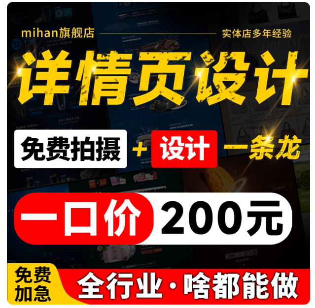 详情页设计淘宝店铺电商网店装修直通车主图设计抠图美工平面广告