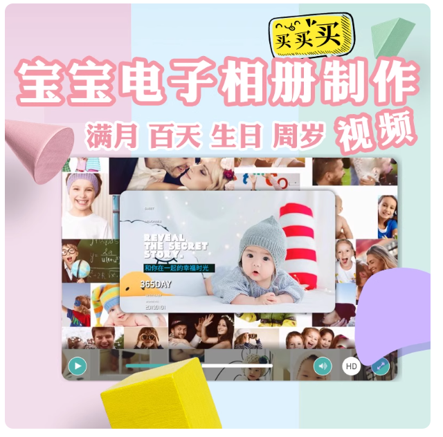 宝宝儿童电子相册制作满月百天宴生日周岁成长历程照片高清MV视频