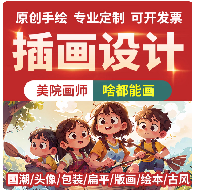 手绘插画设计代画定制Q版卡通人物头像商业动漫画册文创国潮绘本