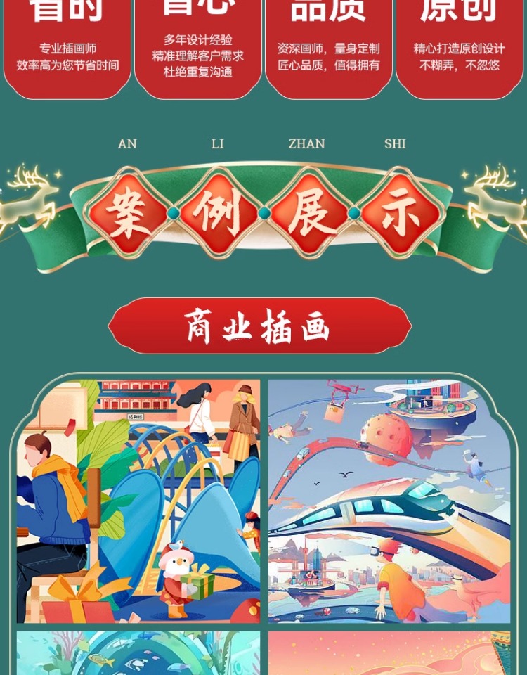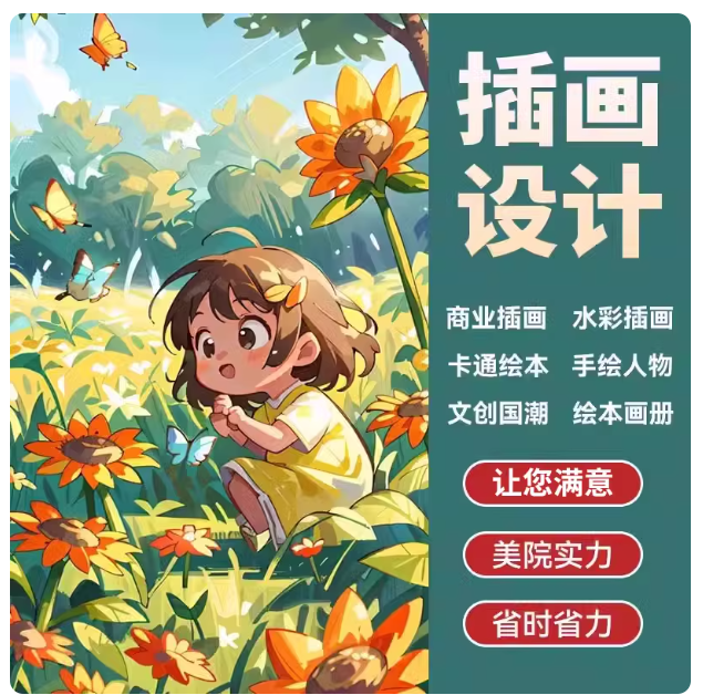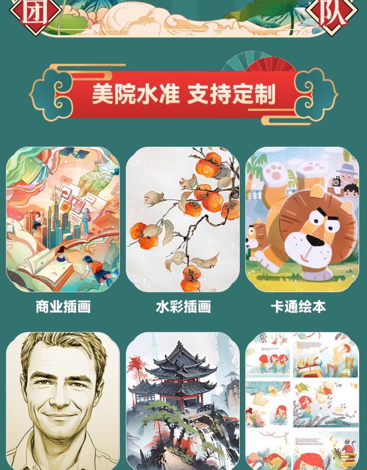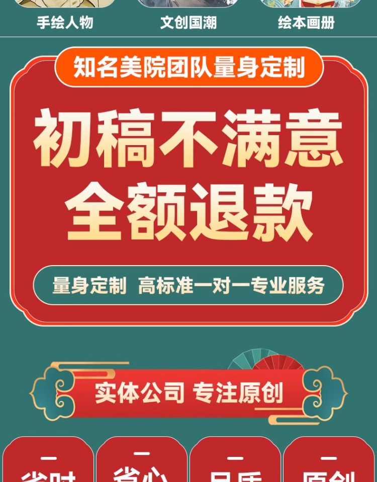 服务详情 - 手绘插画设计代画定制Q版卡通人物头像商业动漫画册文创国潮绘本